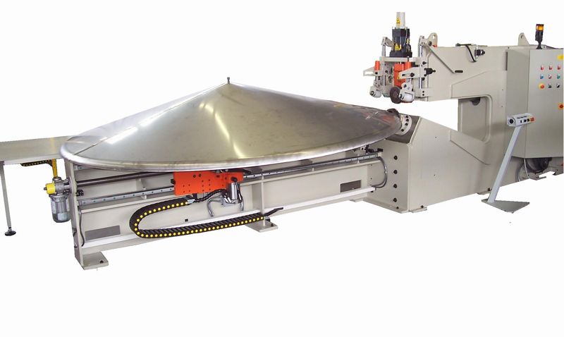 Halbautomatische Kreisschere zum Beschneiden flache Bleche, kreisförmige und geschweiste Kegel.