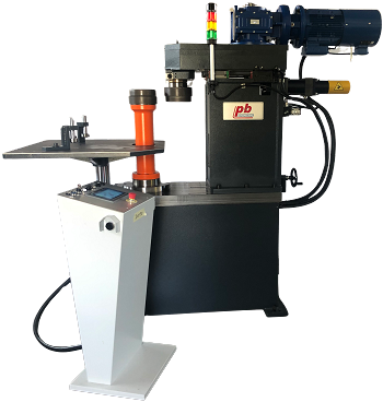 Die Produktion von kleinen und mittleren Serien mit häufigem Produktionswechsel erleichtern. Dicken bis 8 mm. Maschine ist für runde oder ovale Teile geeignet. Spindeldrehzahl wird durch Umrichter gesteuert. Reitstock zum Spannen des Werkstücks. Die Maschine wird mit einem halbautomatischen oder automatischen System geliefert. Automatisches Be- Entladen der Teilen ist es möglich. Es ist auch möglich eine automatische Schrottentladung.