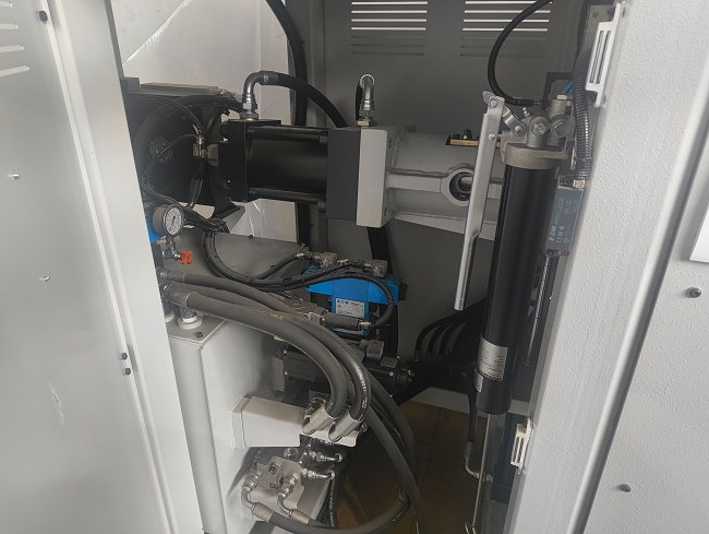 Macchina di tipo I/O per calibratura, allargatura, rastrematura , nervatura tubi. Dotata di stampo espansione a settori gestito da asse CNC idraulico e rotazione automatica del pezzo